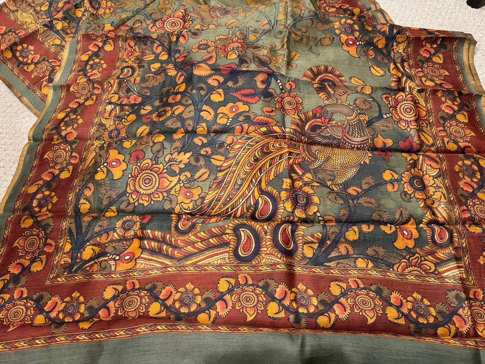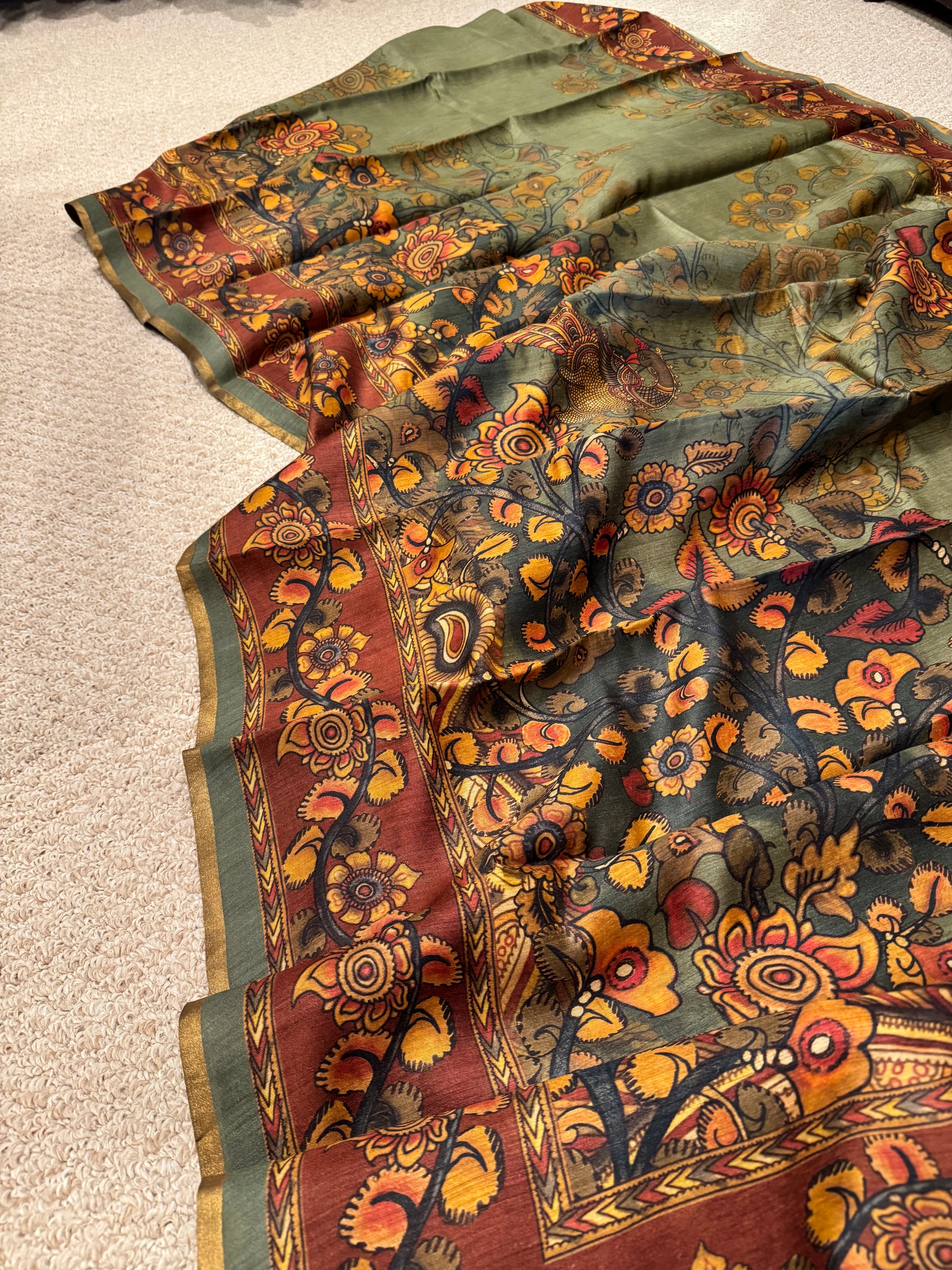 The Mehendi Magic: Kalamkari-Inspired Spun Silk Saree