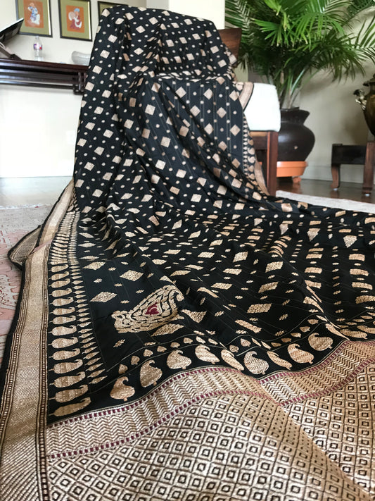 Handwoven silk Kadhua Banarasi saree -The Art of Banaras woven in Black.